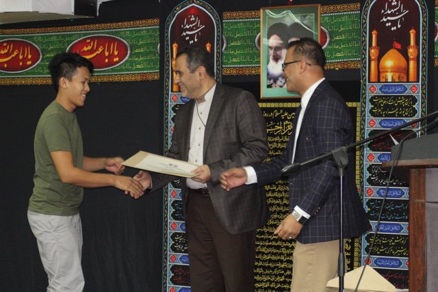 در ادامه این برنامه به سه نفر اول برنده در رشتههای خوشنویسی، نقاشی، مقالهنویسی و سخنرانی جوایز نقدی به مقدار سه هزار پزو برای نفر اول، دو هزار پزو به نفر دوم و به نفر اول هزار پزو از سوی انجمن دوستی فیلیپین و ایران به همراه لوح یاد بود اهدا شد.